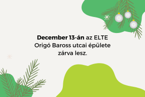 December 13-án az ELTE Origó Baross utcai épülete zárva lesz. Ezen a napon telefonon és e-mailen sem leszünk…
